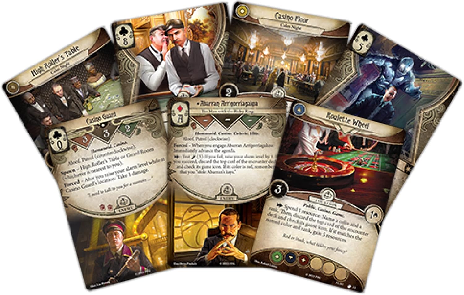 In Fortune and Folly, one to four investigators plan and execute a daring casino heist. Their target: the Wellspring of Fortune, a mysterious relic that allows the casino to stack the odds in its favour (literally). As a scenario pack, Fortune and Folly can be played standalone or inserted into a campaign as a side-story. It even has a few extra features if used as a side-story in The Scarlet Keys campaign!