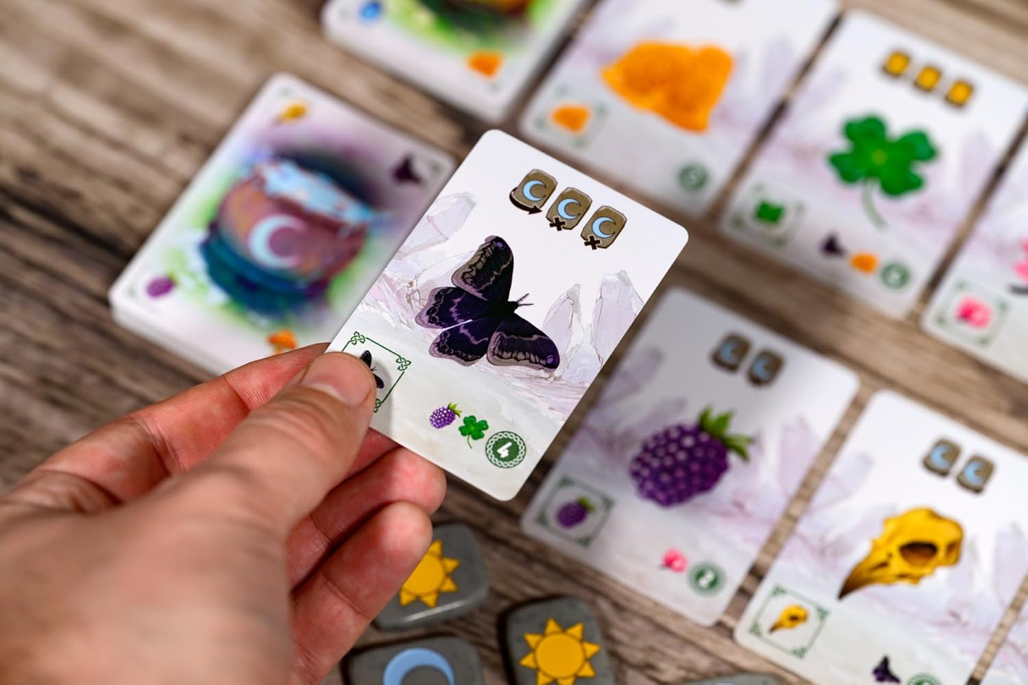 - BEAUTIFUL ACRYLIC COMPONENTS: Features 22 Sun/Moon acrylic runes, 72 cards, boards, tokens, and a scorepad, all designed with vibrant artwork and high-quality materials.