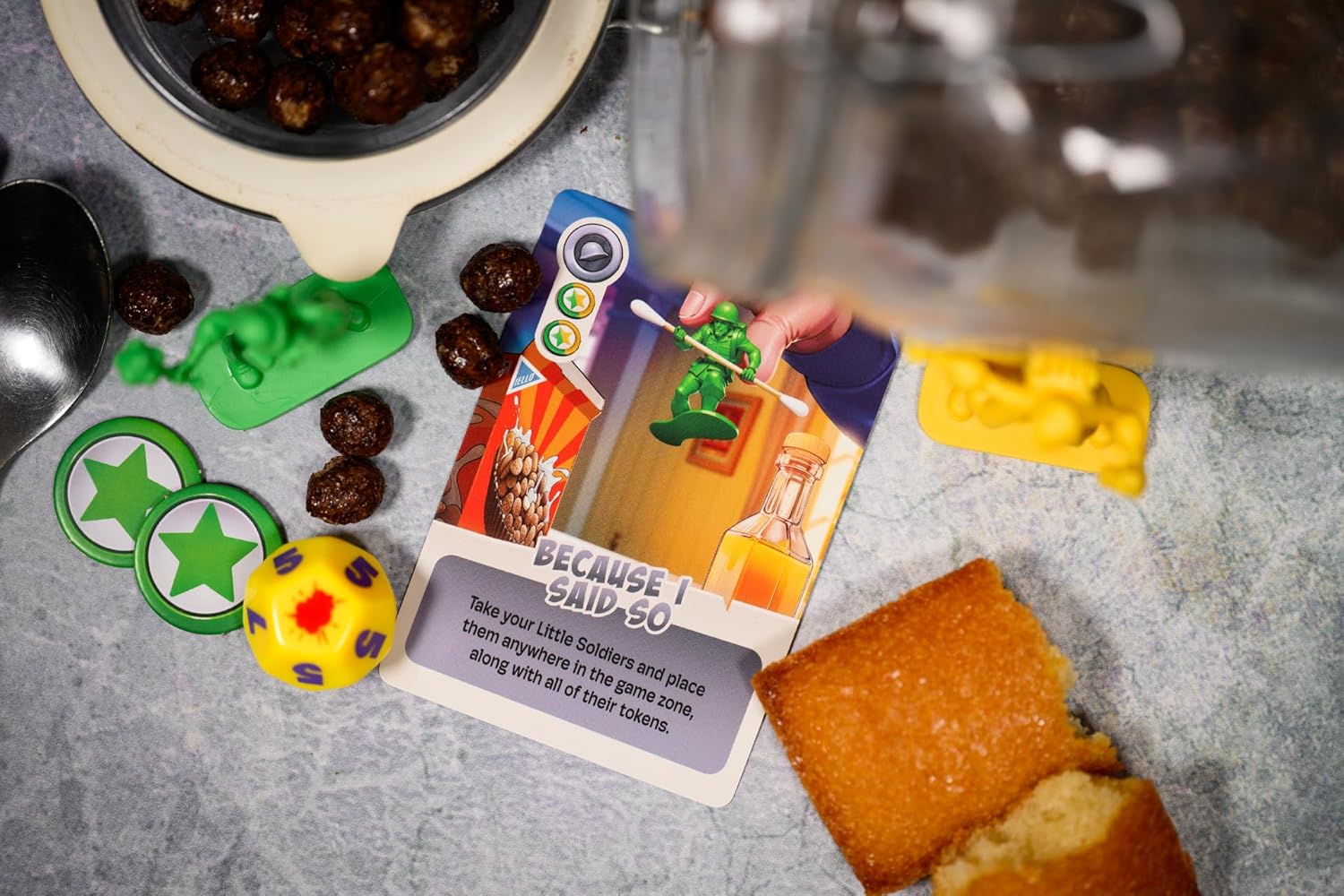 Your tabletop becomes the battlefield in Little Soldiers! Bring your armies together in this tabletop wargame where everything on your table becomes the terrain of the battle - plates, glasses, cutlery, pens, and anything else can be used to build dynamic battles. The game comes complete with rules for various game scenarios, including King of the Hill, Battle Royale, Team games and a Cooperative mode. Use modules to add more strategy to your games as the war for your tabletop goes on!