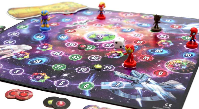 - Have fun racing around the galaxy to collect infinity stones with your 5 x 3D Marvel playing pieces!