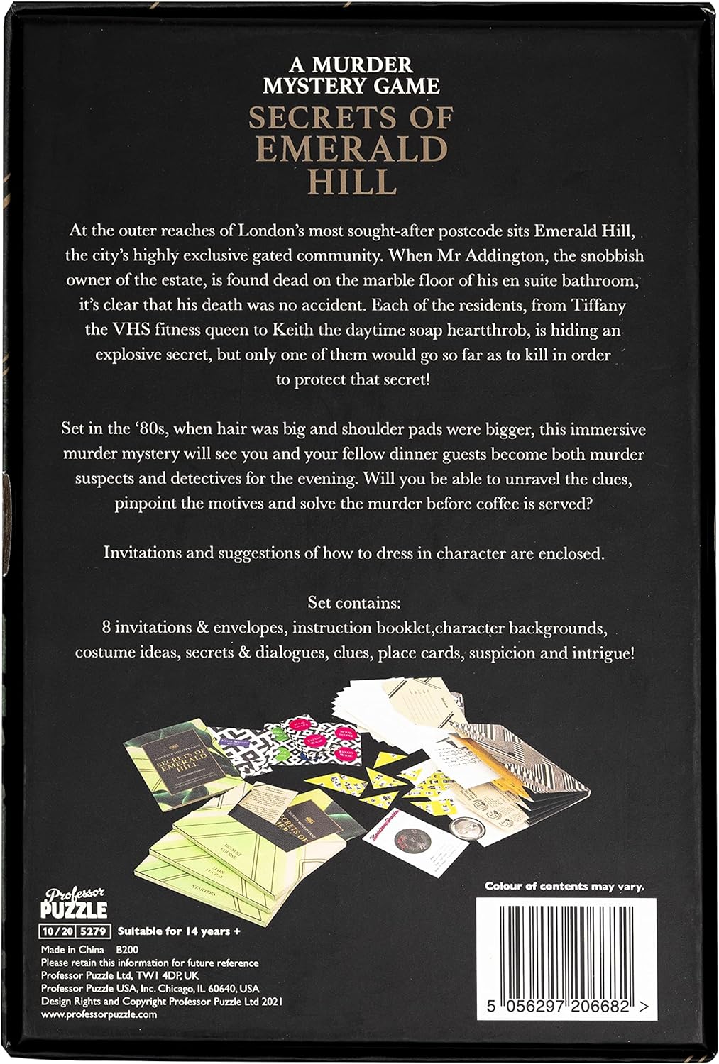 - Secrets of Emerald Hill - Unique 1980's themed murder mystery game by Professor Puzzle.