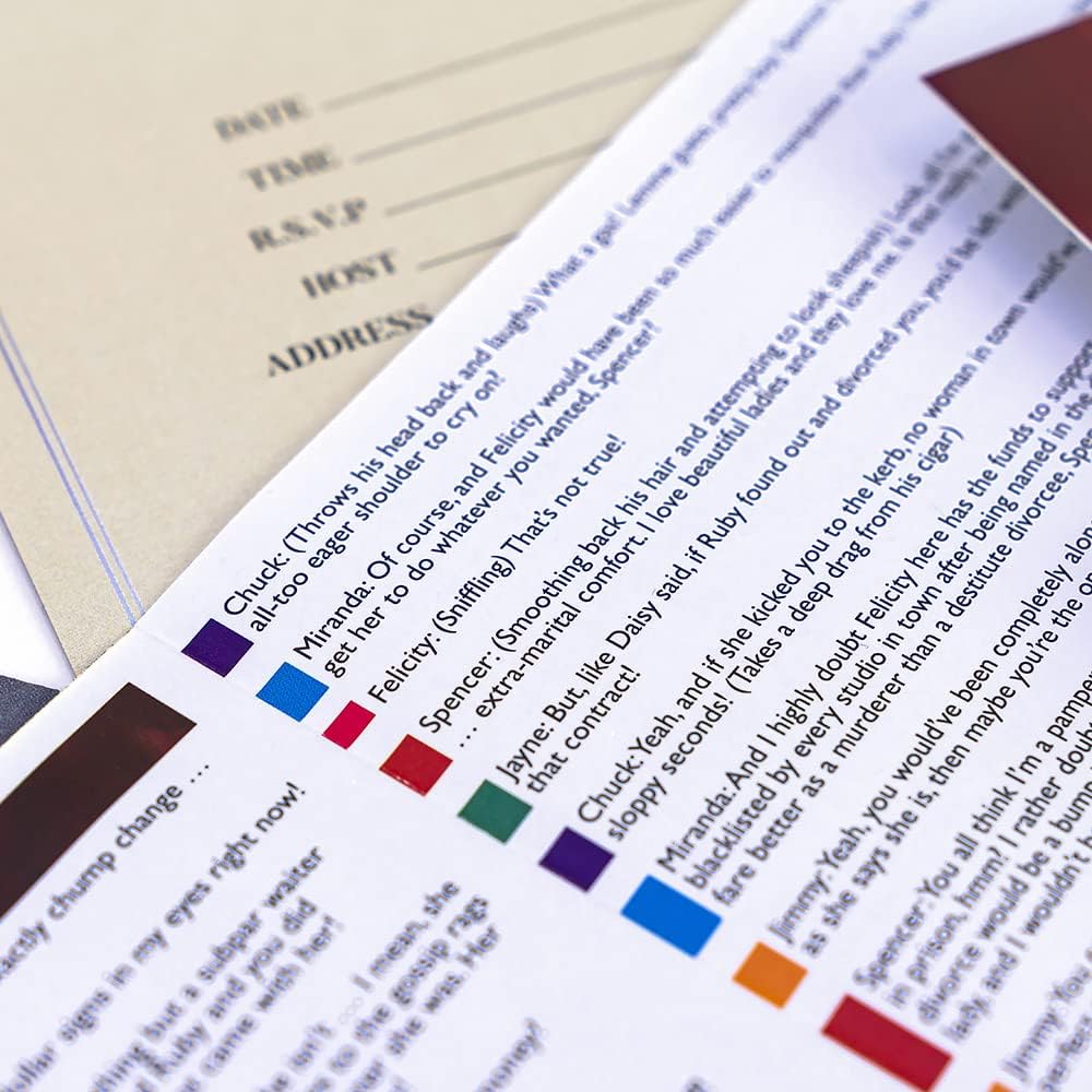 - A fully scripted murder mystery game with clues, puzzles and a final "Big Reveal".
