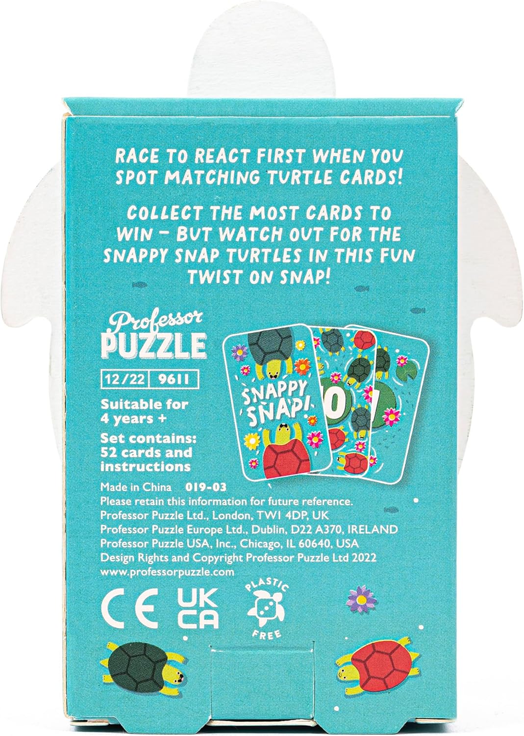 Race to react first when you spot matching turtle cards! Collect the most cards to win – but watch out for the snappy snap turtles in this fun twist on Snap!