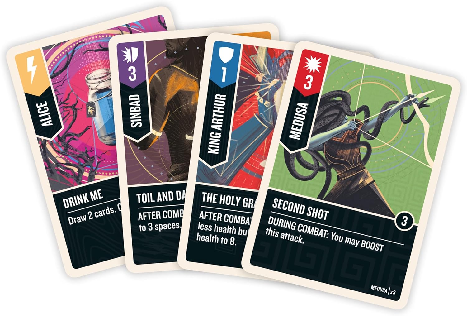 Battle of Legends, Vol. 1 includes four legendary heroes: Medusa, King Arthur, Alice and Sinbad. Each hero has a unique deck of cards that fits their fighting style – but remember, in the end, there can only be one winner!